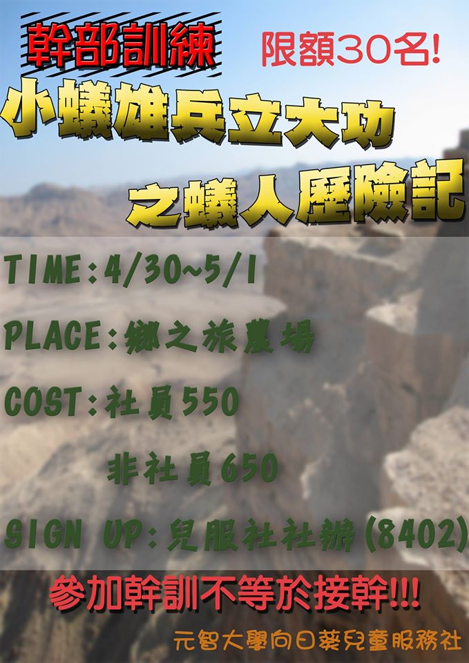 前30個名額中只開放3個名額給無兒服營隊經驗者!!!